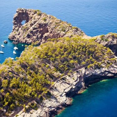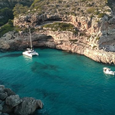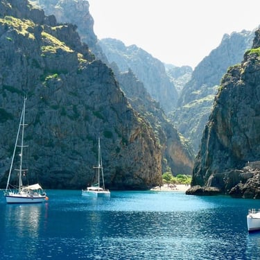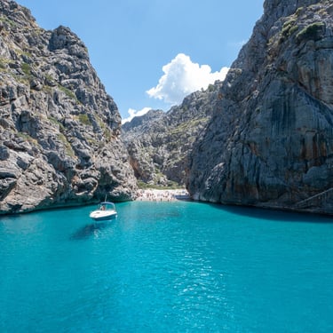 One of Mallorca’s most dramatic landscapes — towering cliffs, deep turquoise waters, and world-class spots for cliff jumping or free climbing. Accessible almost only by sea.