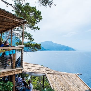 A cliff-top restaurant reachable only by boat and footpath. Offers breathtaking views and a one-of-a-kind lunch experience overlooking the sea.